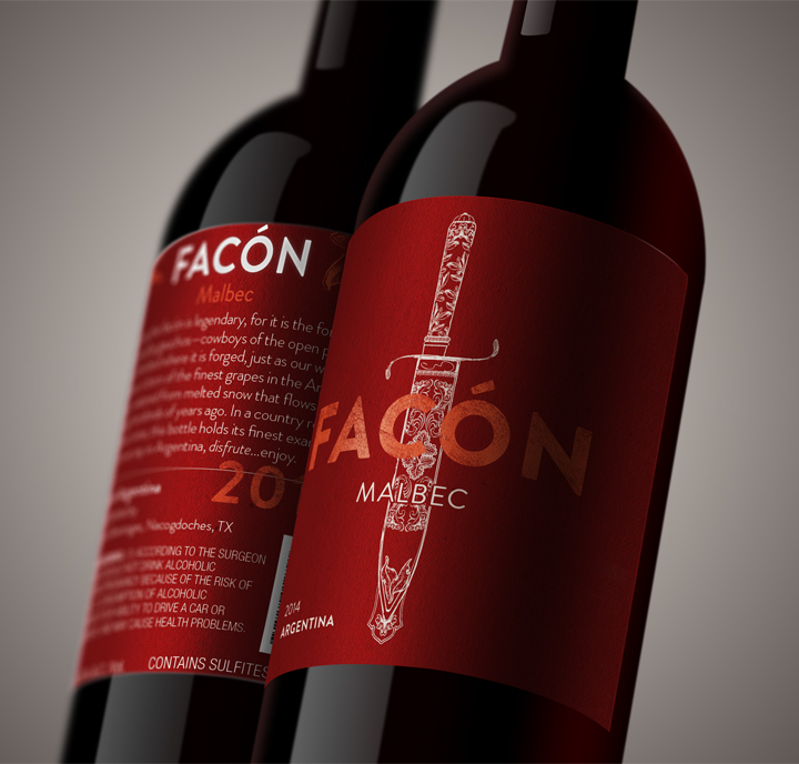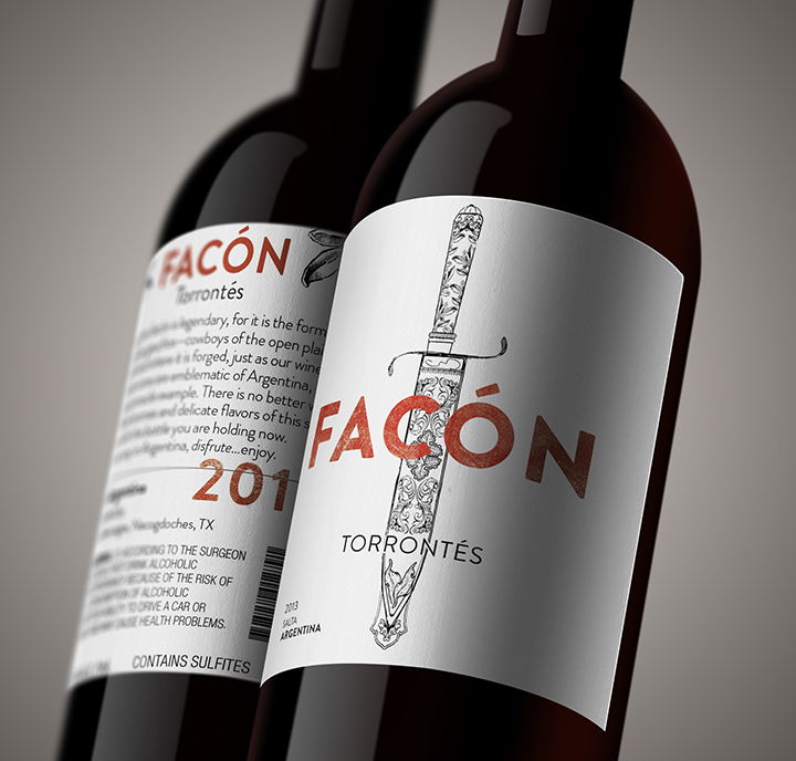 Logo and label design created for the Argentinian wine company, Facón.