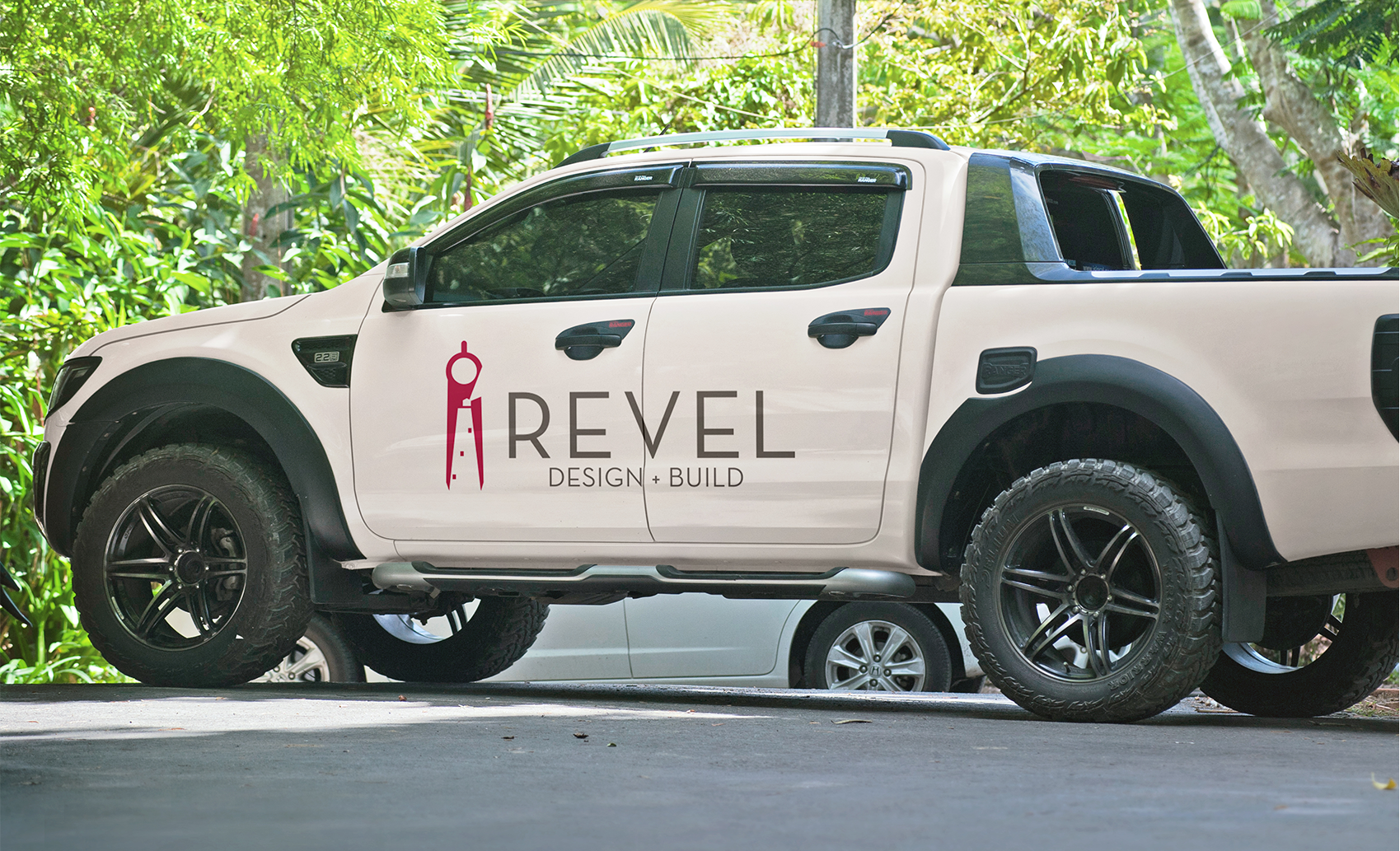 Logo and branding for Revel Construction based out of Bald Head Island, South Carolina. The Old Baldy Lighthouse is a major landmark of the area so it made sense to use it in combination with the protractor tool.